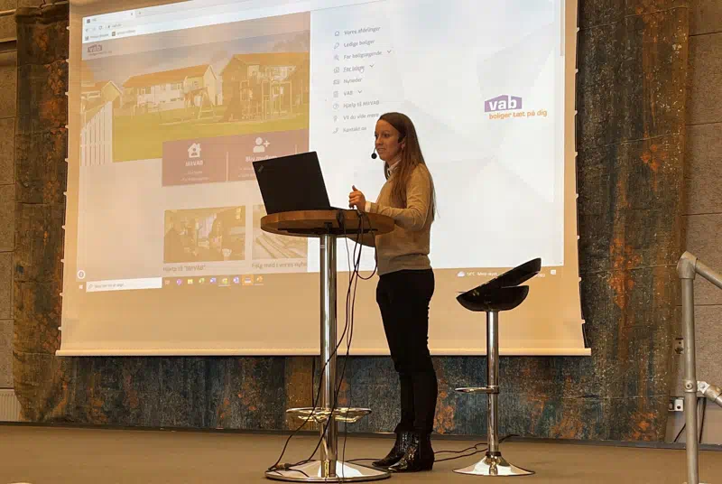Sidst på dagen introducerede Betina Palmbo VAB´s nye hjemmeside, som har fået et nyt og flot design med vægt på brugervenlighed. Som noget helt nyt kan lejerne nu logge på MitVAB og se sine lejerdokumenter, se sine kontaktpersoner samt rette direkte henvendelse til VAB.