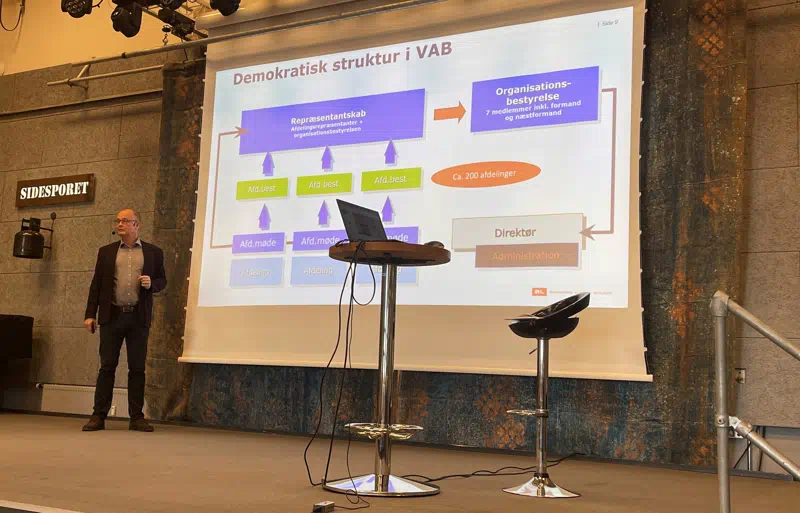 Karsten Krüger indledte mødet med at præsentere VAB´s værdier, vision og strategi, som var blevet til i samarbejde mellem organisationsbestyrelsen og medarbejderne. Det var en introduktion og invitation til en fortsat udvikling af det gode samarbejde og den gode dialog med afdelingsbestyrelserne.