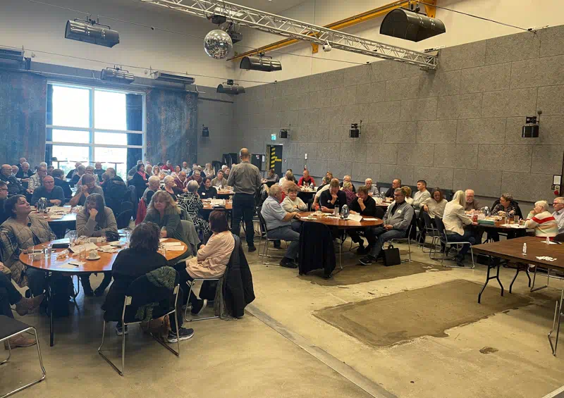 Dagen begyndte med fælles morgenbuffet i Restaurant Sidesporet. Administrerende direktør Karsten Krüger bød velkommen i Rotationens lokaler, hvor der var dækket op med 12 rundeborde med plads til 8 deltager ved hvert bord.
