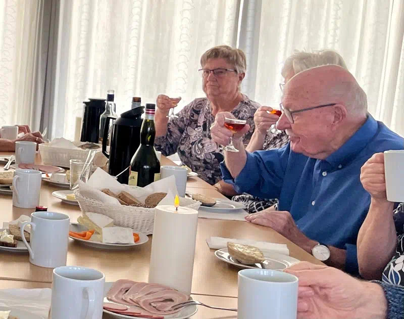 Som en fast tradition samles beboerne i seniorbofællesskabet i Poppellunden i Høng hver onsdag formiddag i deres fælleshus til en hyggelig komsammen.