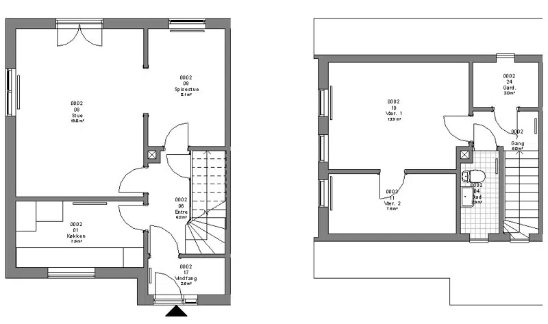 Dobbelthuse opført i røde sten med tegltage og kælder i 1½ plan, 8 boliger - 4 rums. Byggeår 1948.
