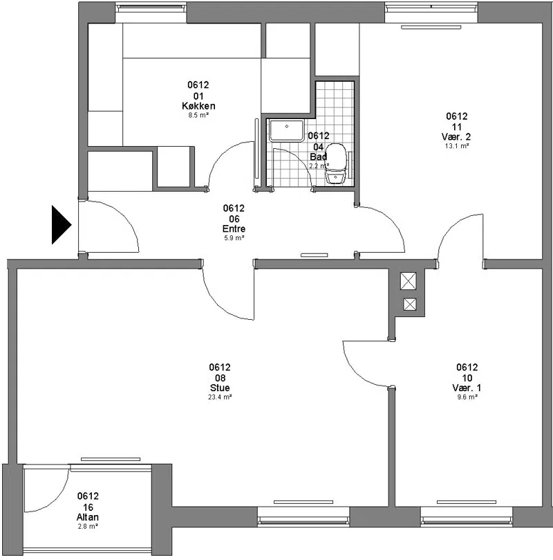 44 boliger incl. 11 ældreboliger og 12 ungdomsboliger.